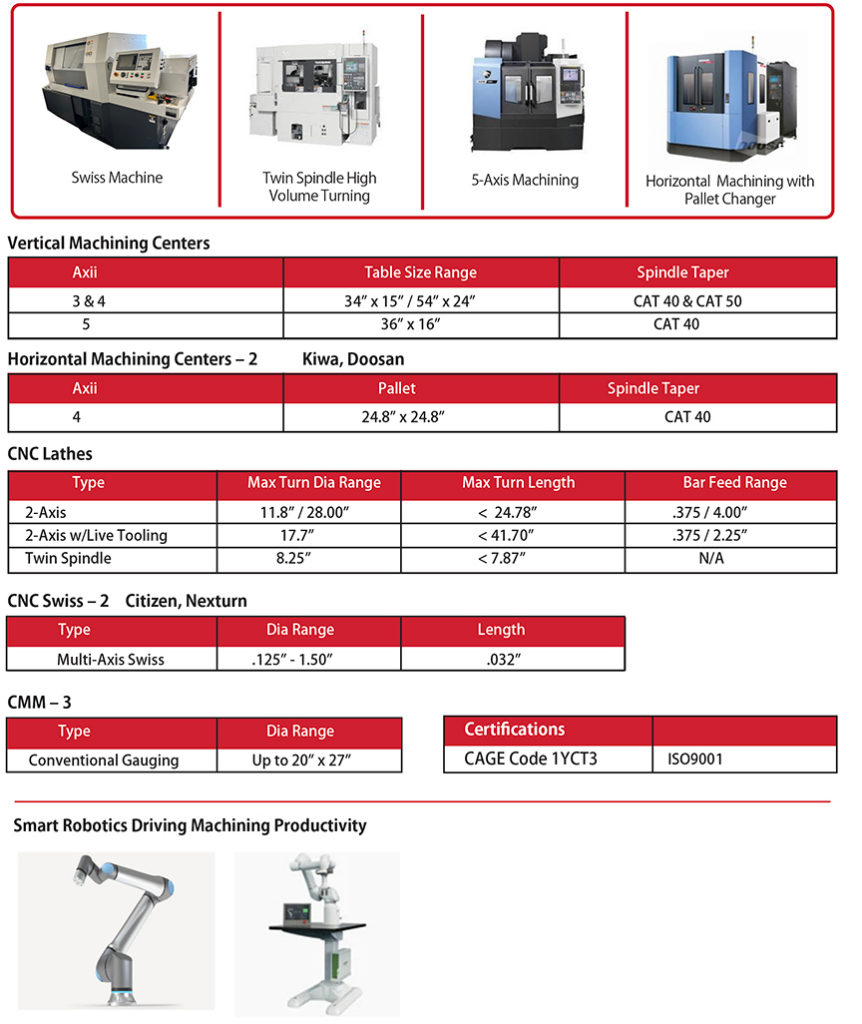 Armor Machining operates a diverse range of advanced CNC machining and inspection equipment to support precision milling, turning, mill/turn, and EDM applications. Our equipment portfolio enables us to efficiently produce components ranging from small, high-precision parts to large industrial components.